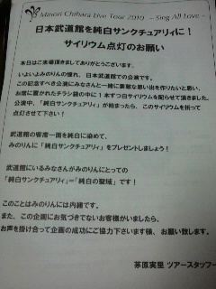 この紙と一緒に、白のサイリウムが各席1本づつ置かれていました。