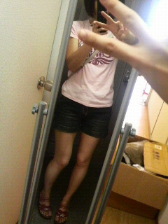 Tシャツにデニムショーパン。
