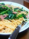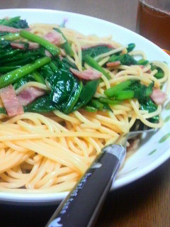 晩御飯には久しぶりにほうれん草とベーコンの和風パスタを作りました(*´∀`*)