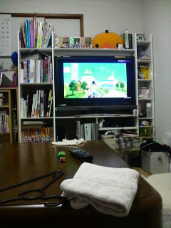 たまにはT氏の座ってる座椅子でマッタリ洗濯を畳むとしますか。