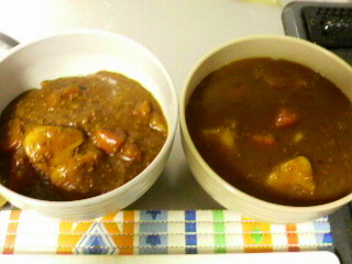 T氏実家は関西なので出汁でといたカレーをかけます(´・ω・`)