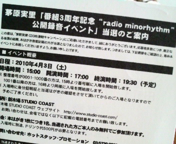 T氏が茅原実里の公開ラジオ録音に当選してしまいました。