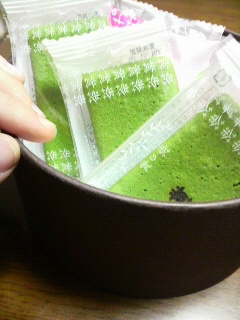 そういやこの抹茶のお菓子、いつかKちゃんに貰った事あるなぁ。